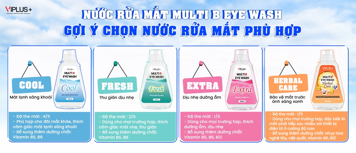 Nước Rửa Mắt VIPLUS+ Multi B Eye Wash Bổ Sung Độ Ẩm Cho Đôi Mắt Khoẻ Đẹp 300ml – FRESH