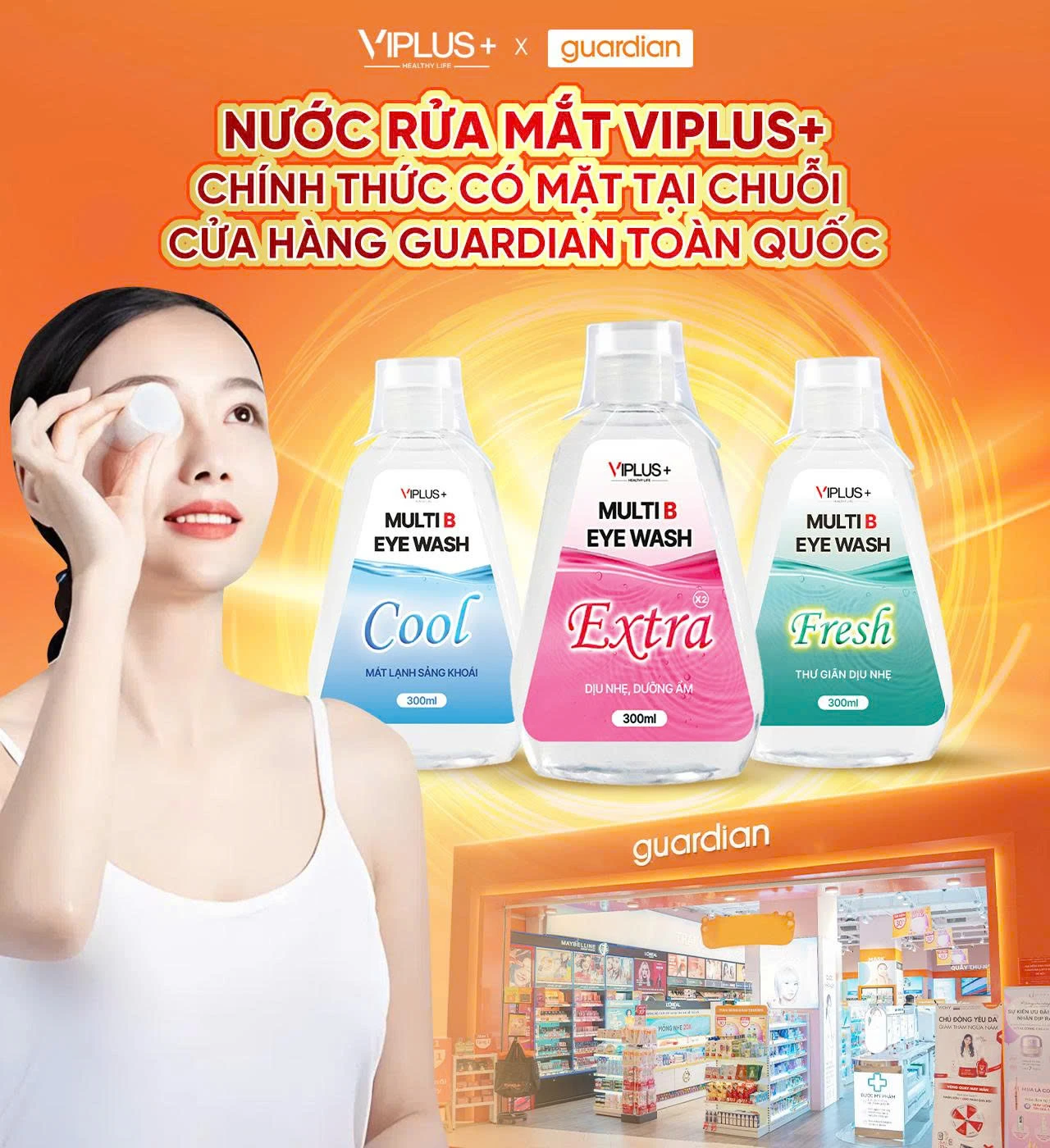 Chăm sóc mắt chưa bao giờ dễ dàng và tiện lợi đến thế! VIPLUS+ hân hạnh thông báo: Kể từ hôm nay, dòng sản phẩm nước rửa mắt VIPLUS+ đã chính thức được phân phối tại chuỗi cửa hàng Guardian trên toàn quốc. Đây là một bước tiến quan trọng, giúp hàng triệu người Việt tiếp cận giải pháp làm sạch và chăm sóc đôi mắt một cách toàn diện, mọi lúc mọi nơi.