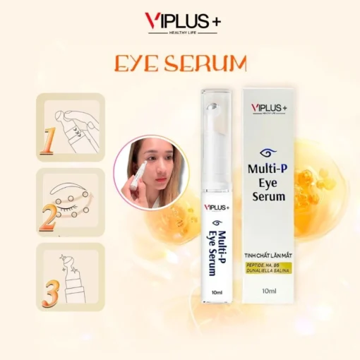 - Tinh Chất Lăn Mắt Viplus+ là sản phẩm chăm sóc vùng da mắt cao cấp, được thiết kế đặc biệt để giảm thiểu các dấu hiệu lão hóa và mệt mỏi. Với thành phần chính là Phức hợp Tripeptide và chiết xuất tảo, sản phẩm mang lại hiệu quả vượt trội trong việc làm mờ quầng thâm, giảm bọng mắt và mang lại làn da tươi trẻ, rạng rỡ.